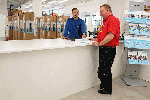 Natürlich können unsere Kunden ihre Ware auch direkt bei uns abholen, wenn sie dies möchten. Unsere Abholertheke ist genau dafür eingerichtet worden und obwohl es in der Regel sehr schnell geht, haben wir doch Stühle und Erfrischungen parat für die Wartezeit.